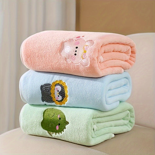 Soft and Breathable Polyester Fiber Children's Bath Towel & Robe, Can Be Used as Swaddle or Stroller Blanket with Cartoon Patterns, Regular Cut for All-Season Comfort -