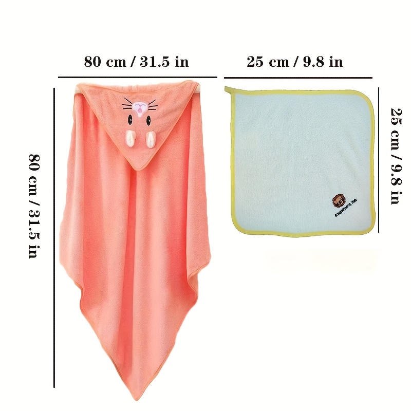 Cartoon Bunny Baby Bath Towel - 31.5 X 31.5 Inches, Comes with 3 Towels, Highly Absorbent, Good Warmth Retention, Easy to Clean, Animal Designed Baby Products, Toddler Bath Towels, Baby Essentials for New Parents, Christmas And Halloween Gifts