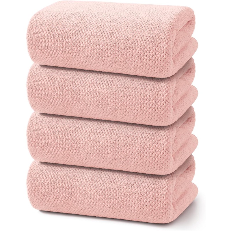 REDKISS 4 Pack Pink Bath Towels 35 x 70in Extra Large Coral Fleece Bath Towel Set Super Soft Highly Absorbent Plush Bathroom Towels for Adults Quick Dry Towel Set for Spa Gym Travel